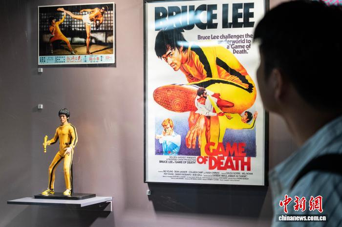 图为一名密斯正在李小龙的巨幅海报前摄影纪念。记者 侯宇 摄